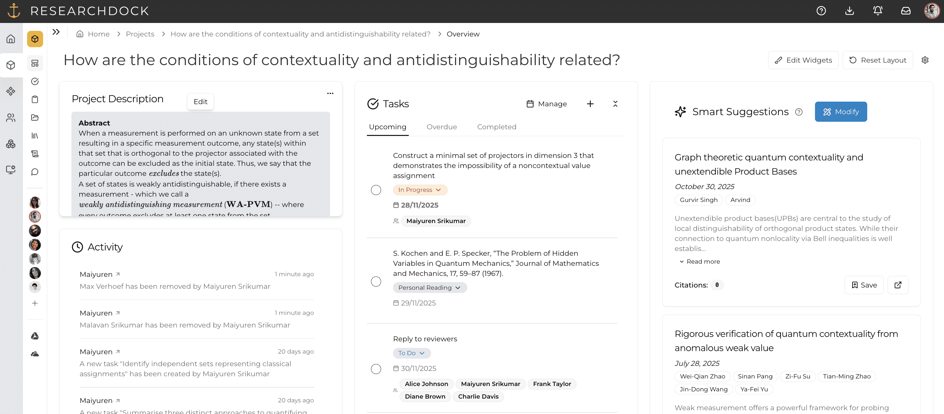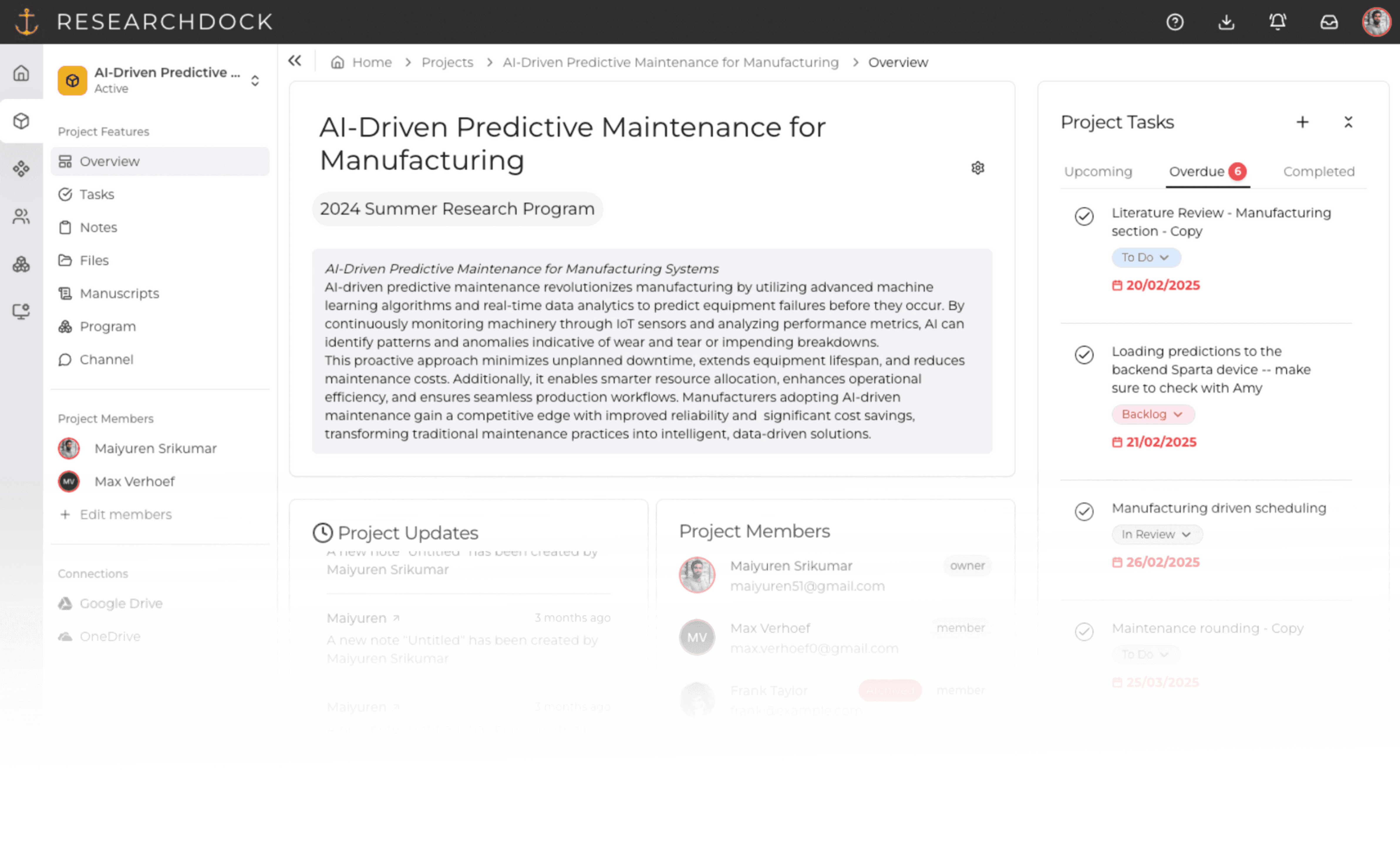 Academia comes with enough challenges—don’t add management headaches to the mix. With ResearchDock, you can effortlessly oversee projects and manage your research group.